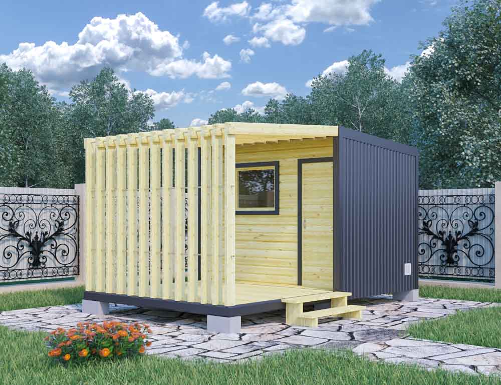 Бытовка для дачи в стиле хай-тек с цветным профлистом 6х2.46х2.414.4ДВП-Оргалит: